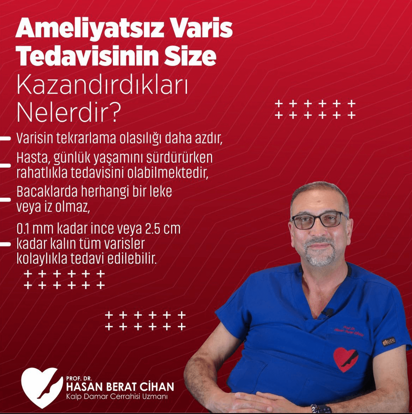 Kalp ve damar cerrahisi alanında uzman olan Prof. Dr. Hasan Berat CİHAN, varis tedavisinde edindiği deneyimi son teknolojilerle birleştirerek kısa sürede varislerinizden kurtulmanızı sağlıyor. Şimdi siz de ücretsiz muayene olun ve hemen tedaviye başlayın!